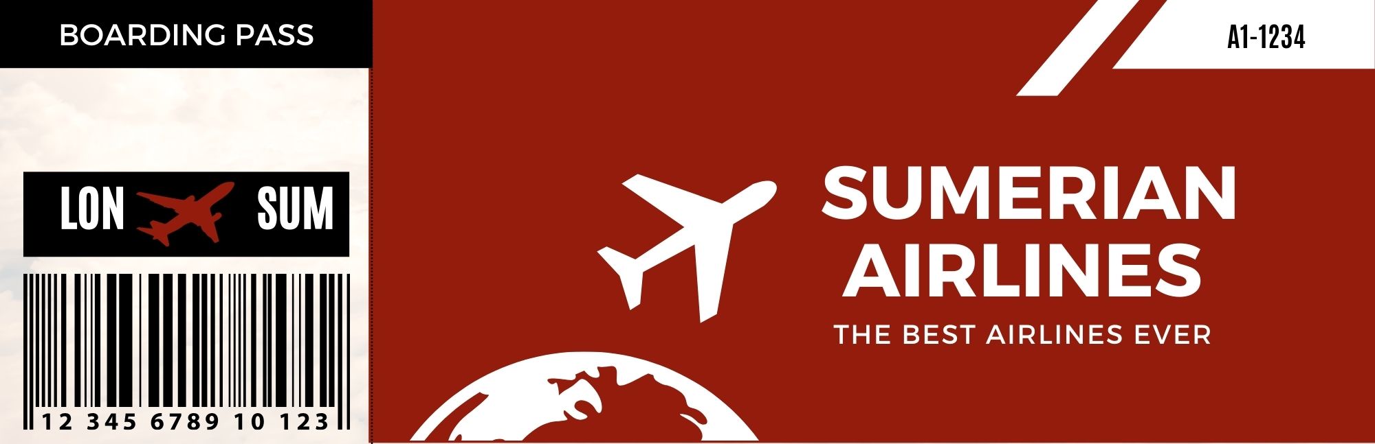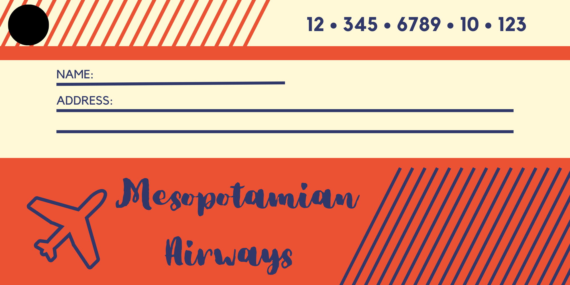 I’ve made two tickets. One is for the outward journey and one for the return, issued from the Sumerian Airlines, Flight Number A1-1234 and A1-1234R. They are partially customisable. By this, I mean you can add the name of your child, as well as boarding time and arrival time. The tickets can be torn so that the child keeps their own ticket stub. This can be a nice addition to their presentation board for the end of unit presentations.