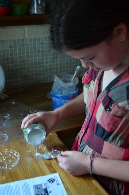 She mixed the plaster and let it set in the molds: