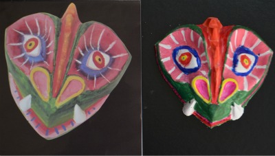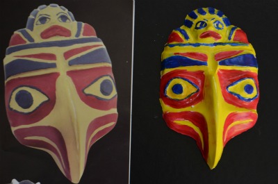 C11 made a great start on her topic of spirituality by making some plaster cast masks of Native American spirit masks using this kit: